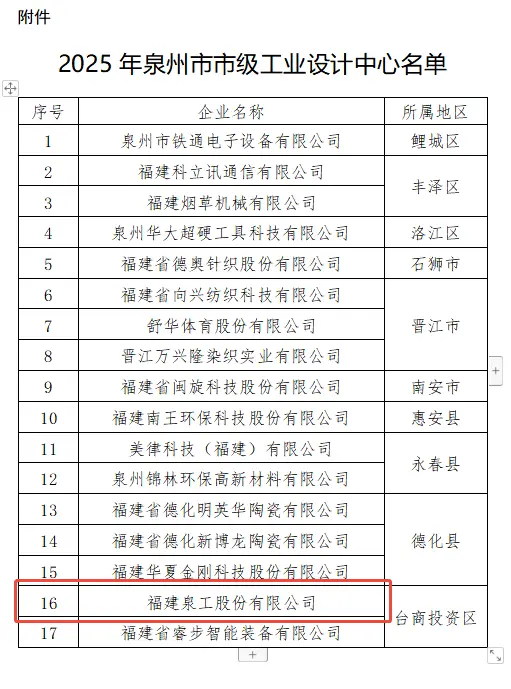 近日,泉州市工业和信息化局正式发布了《关于公布2025年泉州市市级工业设计中心名单的通知》,全市共有17家企业上榜。其中,深耕智能砖机与固废综合利用装备领域的威尼斯人娱乐城凭借在工业设计创新、研发体系建设及成果转化等方面的突出表现成功入选。