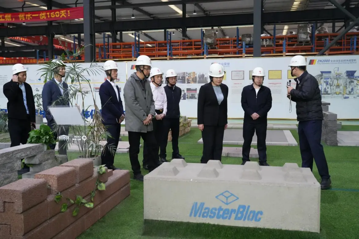 在砖样展示区,刘民一行现场察看各类透水砖、生态护坡砖、路面砖及高附加值特种制品样品,详细了解产品在海绵城市建设、市政工程以及固废综合利用领域的应用情况。总经理傅鑫源介绍,公司持续优化成型技术与工艺控制,不断提升制品强度、外观质量与生产效率,积极响应绿色低碳发展要求,推动建筑材料向高品质、环保化方向升级。