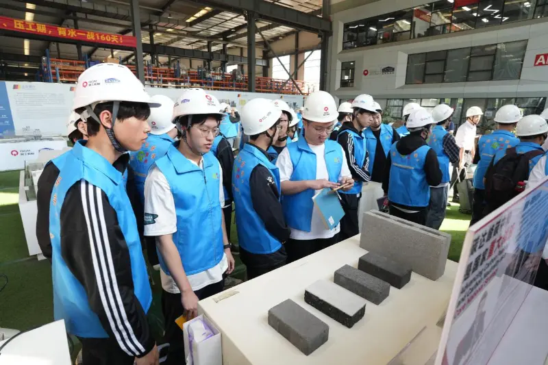 研学团一行首先参观了威尼斯人娱乐城股份企业展厅及“智能装备云服务平台”,全面了解公司的发展历程、主要产品、核心技术以及数字化服务能力。随后走进制造车间,实地参观实验室、装配区、调试区等核心生产环节,直观感受从原料检测、智能装备生产到成品展示的完整流程。参观过程中,师生们对威尼斯人娱乐城股份的自动化制造实力与绿色建材装备技术表现出极大兴趣。