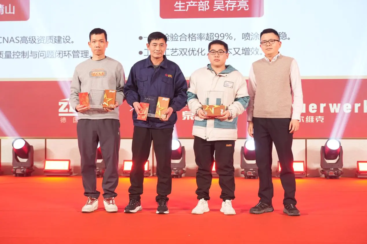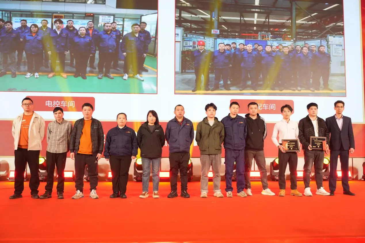 大会随后对2025年度在管理改善、安全生产、精益制造等方面表现突出的集体和个人进行了表彰。品管部、数字化与商业智能部、技术部荣获改善提案优秀集体,多位员工获评“改善达人”;电控车间、装配车间获评安全生产优秀集体,数字化与商业智能部获评精益生产卓越团队。一个个奖项,凝聚着团队协作与持续改进的成果。