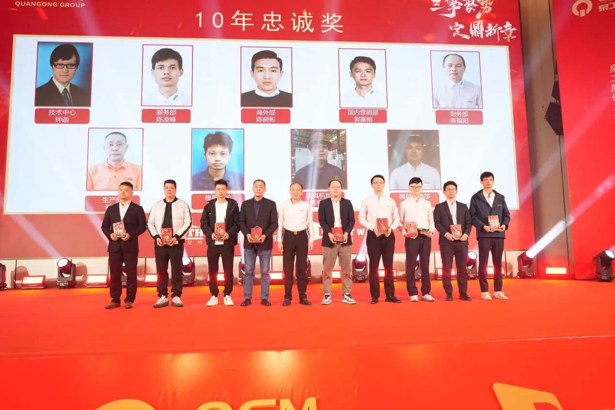 10年忠诚奖:陈凌峰、郭基榕、魏民、陈晓彬、陈福阳、钟迦、戴东林、傅承东、吴渊富